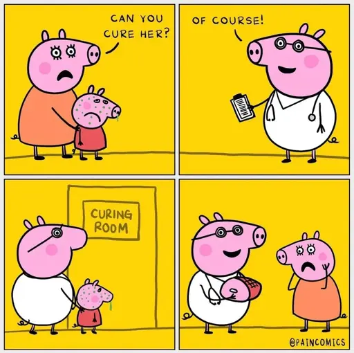 This isn’t a joke about a mother’s pain. It’s a comic about wordplay, and the disturbing implications of “our world but everyone is pigs”