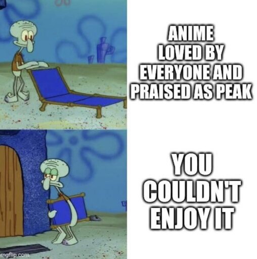 minus-squareMercuri@ani.sociallinkfedilinkEnglisharrow-up1·2 months agoFor me it’s Reincarnated as a Vending Machine. A lot of people like it and it’s already in season 3 but I couldn’t do it. And I’m normally a huge sucker for isekai. I gave it 3 episodes and I was done.