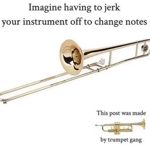 Former trumpet gang, I just want people to think about the fact that every brass instrumentalist has to empty out a notable amount of spit/moisture from their instrument every once in a while and I hope you’re gagging right now because I always do at the thought of it