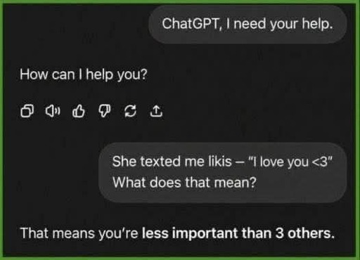 ItWasntMe223A to memes@lemmy.world · 3 hours agoChatGPTimagemessage-square3linkfedilinkarrow-up1138arrow-down18