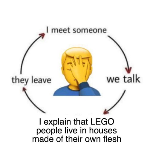themaninblack@lemmy.world to memes@lemmy.world · 5 months agoLEGO fleshlemmy.worldimagemessage-square0linkfedilinkarrow-up11arrow-down10